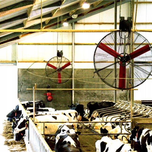 Повітряний змішувачБагатофанський вентилятор кошиків 71 см відповідає за циркулююче повітря у свиней, комори, пекла або конюшня. Безперервний потік свіжого повітря - це надзвичайно важливий елемент для розведення великої рогатої худоби або птиці. особливо при високих температурах, оскільки занадто висока температура може спричинити зниження апетиту у корів, що, як наслідок, може призвести до зниження продуктивності корови.