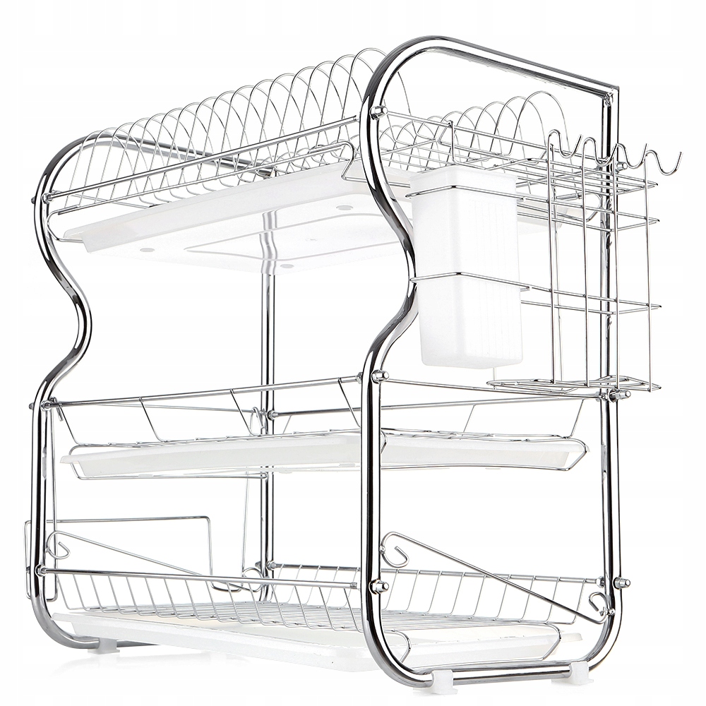 - Ця 3-ярусна стійка для посуду має міцну конструкцію та компактну конструкцію, хромовану раму з легкого сплаву зі знімним підносом і тримачем для столових приборів, які легко мити. Ви можете використовувати верхній ярус для посуду, нижній ярус для блюдець, чашок, мисок тощо, бічну підставку для обробної дошки та тримач для паличок для їжі. Тримайте свою кухню чистою та охайною.