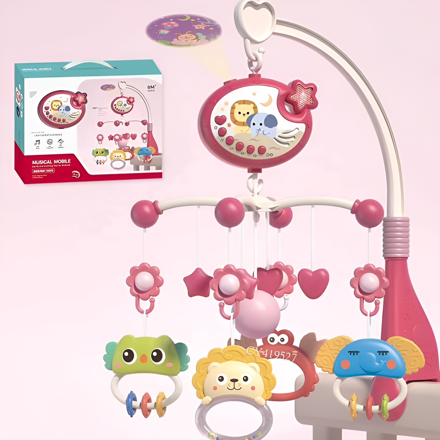 БАГАТОФУНКЦІОНАЛЬНА КАРУСЕЛЬ ДЛЯ ЛІЖЕЧКА З ПРОЕКЦІЙНИМИ ЗІРОЧКАМИ БРязкальцями ТА Прорізувачами