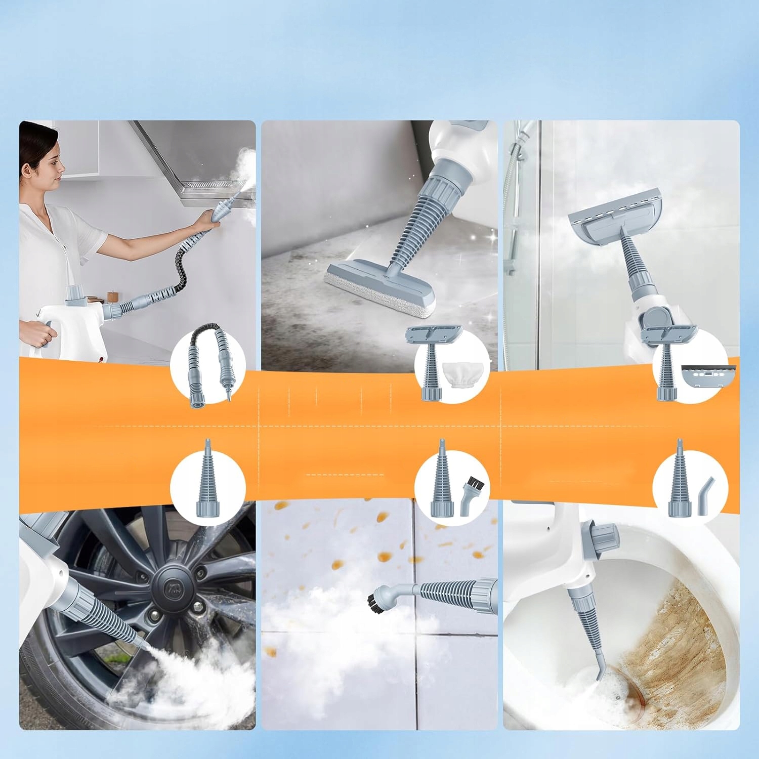 Пароочисник можна широко використовувати для чищення кухонних мийок, плит, диванів, кімнатної плитки, підлоги, килимів, вікон, завіс для душу, туалетів, дитячих іграшок, матраців для домашніх тварин, автомобільних сидінь тощо.