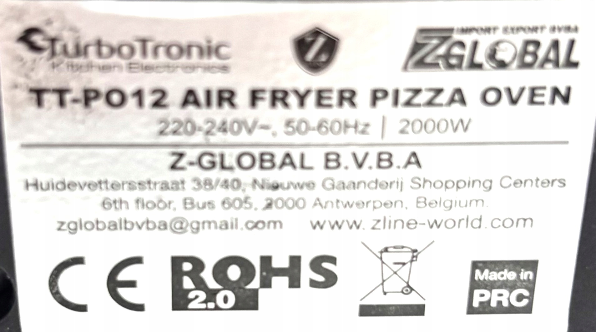 Багатофункціональна піца-піца Ttbotronic TT-PO12 Чорний 2000 Вт