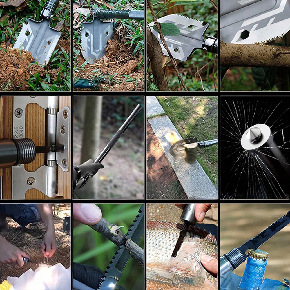лопата може бути відрегульована під різними кутами, щоб забезпечити комфорт використання. Прикріплена пила/ніж досить гостра, і немає проблем з різанням деревини або вирізанням порізів. Ви можете викопати велике багаття і навіть подрібнити трохи деревини у вогні. Ідеально підходить для кемпінгу, поїздки на вихідні або на відкритому повітрі.
