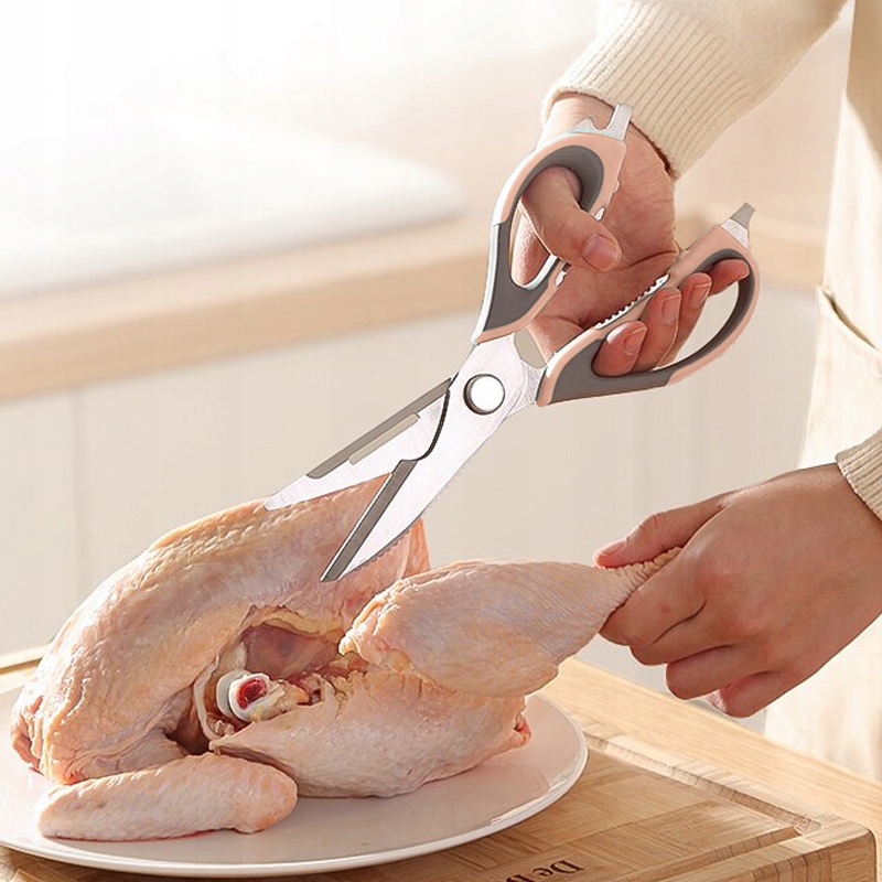 Багатофункціональні ножиці - чудовий інструмент як для любителів, так і для кулінарних фахівців. Вони працюватимуть у вашому домі завдяки своїй функціональності. У них є ручки, що не мають ковзання, тому ви не впадете з руки під час різання. Інструмент можна використовувати для різання м’яса, фруктів, овочів, пляшок, що відкриваються або банки, вичісування риби, розщеплення горіхів.