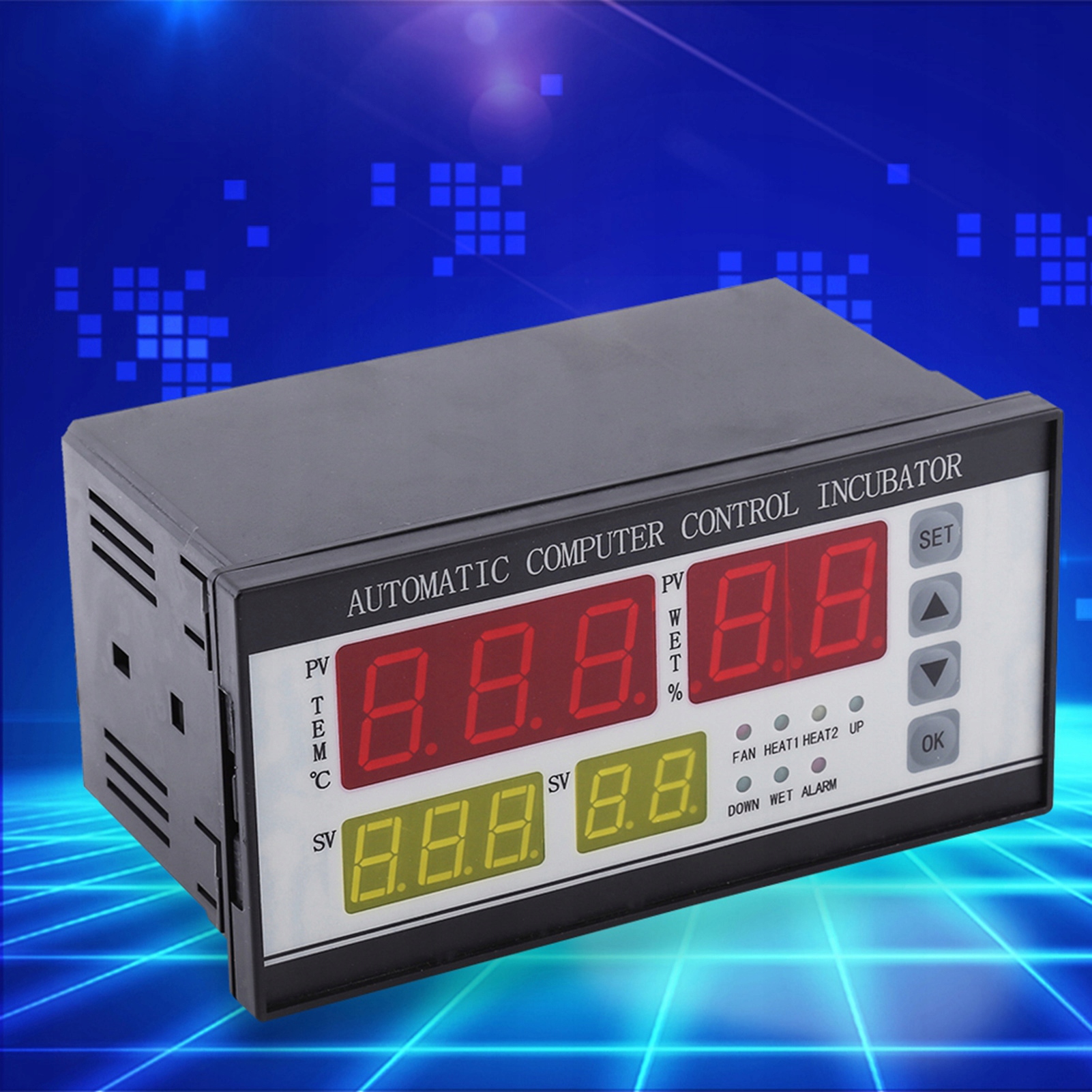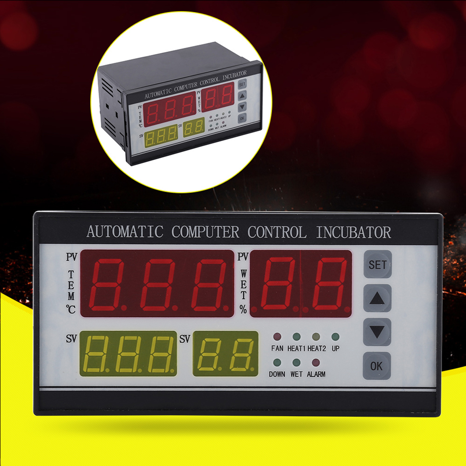 - Цей багатофункціональний контролер, головним чином для інкубатора. Завдяки чотирьом цифровим дисплеям, які показують температуру, життєздатність, дні перевертання яєць та інкубацію, це допоможе вам миттєво дізнатися всі ваші дані інкубації. Автоматична система керування, дуже зручна в експлуатації.