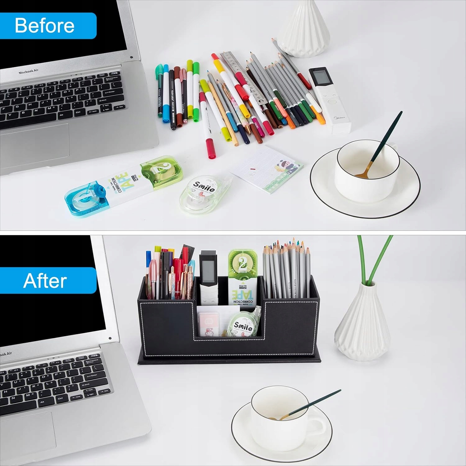 Цей багатофункціональний організатор столу дозволяє зберігати порядок на робочому місці, ідеально підходить для зберігання не лише ручок та олівців, а й інших невеликих предметів, таких як ножиці, кліпи, самостійні картки, пензлики, мобільні телефони, віддалені керування телевізором, косметики та багато більше.