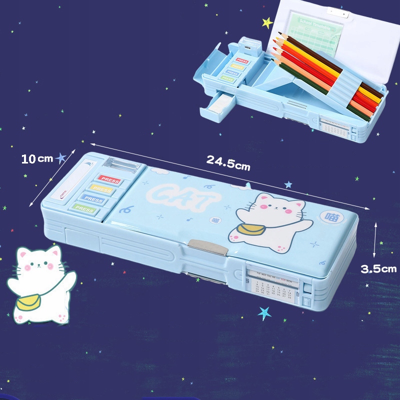 Дві кнопки на пеналі відповідно керують відкриванням і закриванням лівого та правого ящиків для зберігання, даруючи дітям задоволення від дослідження.