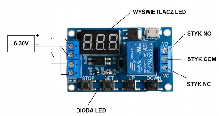 - Напруга живлення 6-30 VDC