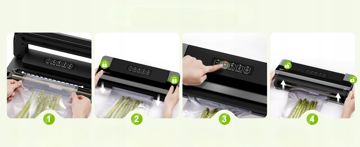 Завдяки цьому ви можете вакуумувати харчові продукти, які завдяки створений вакуум можна довше зберігати в холодильнику або морозильній камері, а також можна захистити закуски для подорожей, пікніків тощо.