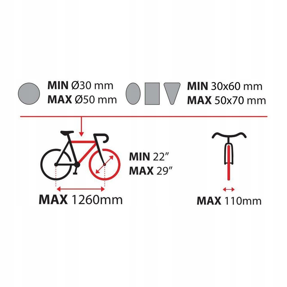 Максимальна ширина шини до 110 мм! Ця платформа буде обслуговувати не лише найширші гірські велосипеди, але й жирні велосипеди! Стовбур дозволяє транспортувати велосипеди з колісною базою до 1260 мм.