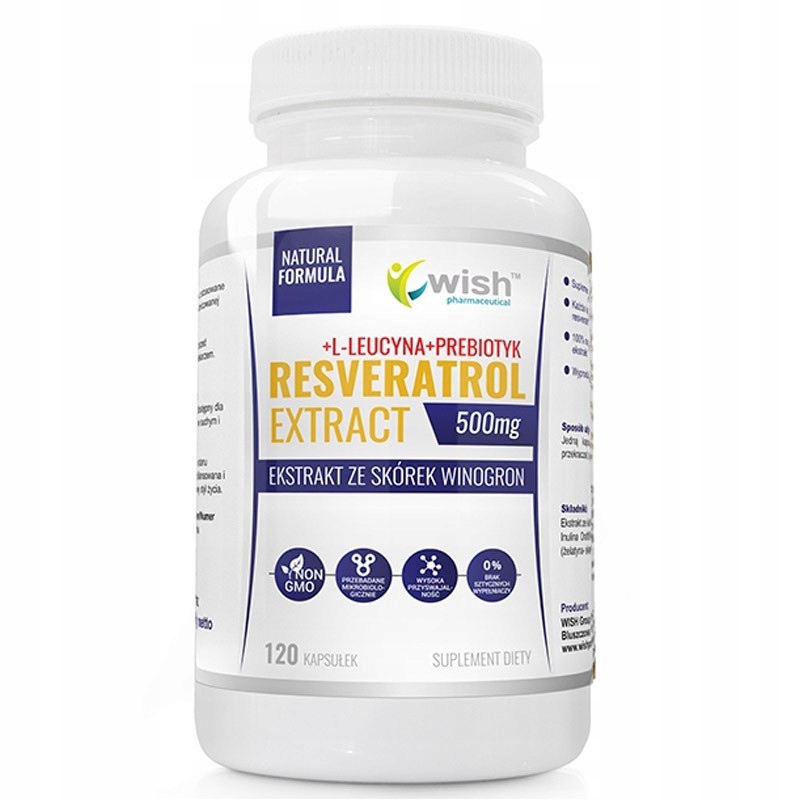 WISH Resveratrol Extract 500mg < /b >дієтична добавка містить 120 капсул в упаковці. Основним інгредієнтом продукту є ресвератрол, який має багато корисних властивостей. Має насамперед кардіопротекторну та протизапальну дію. Також він позитивно впливає на кровоносну систему. Ресвератрол також має доведену протиракову дію, хоча він також широко використовується під час терапії. Є сильним антиоксидантом і має антимутагенні властивості. Він також гальмує розвиток раку на всіх стадіях. Він також підвищує чутливість клітин до ліків, що застосовуються під час терапії.