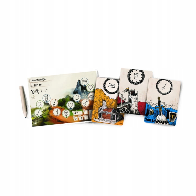 Balada — це динамічна, легка гра перевертати та писати. Протягом 12 ходів ви повинні заповнити карту подіями, намальованими для вашого персонажа. Однак їх порядок важливий - герой не зможе впоратися з супротивником, якщо він не отримає спорядження першим або не зіткнеться з великою кількістю ворогів перед відпочинком. Ви відкриваєте три карти — одну оточення та дві карти подій — а потім малюєте вибраний символ у відповідному місці на карті. Чим небезпечніший шлях, який ви створите, тим більше очок ви отримаєте, якщо ваш герой досягне успіху.