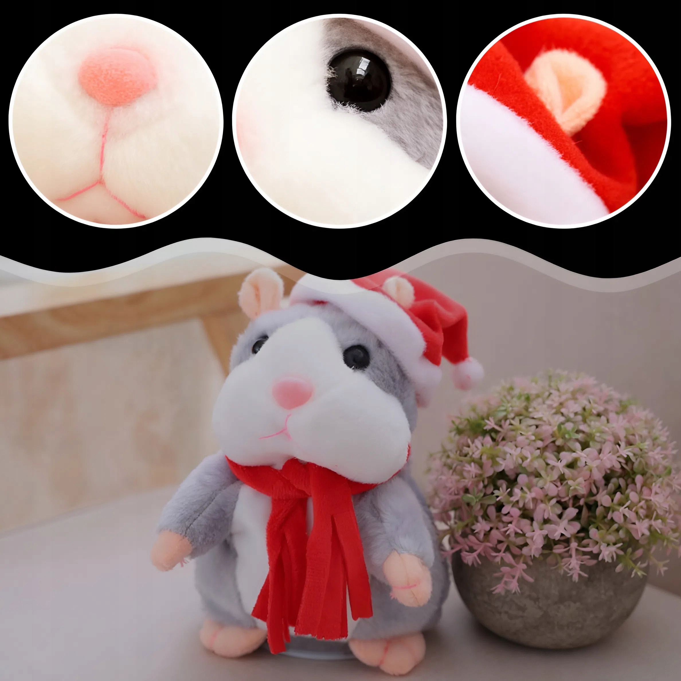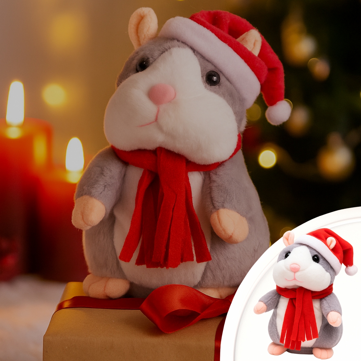 ІНТЕРАКТИВНИЙ ХОМ'ЯК-ТАЛІСМАНТ, ЩО РОЗМОВЛЯЄ, З КАПЕЛЮШКОМ І ШАЛФОМ ДЛЯ ДІТЕЙ