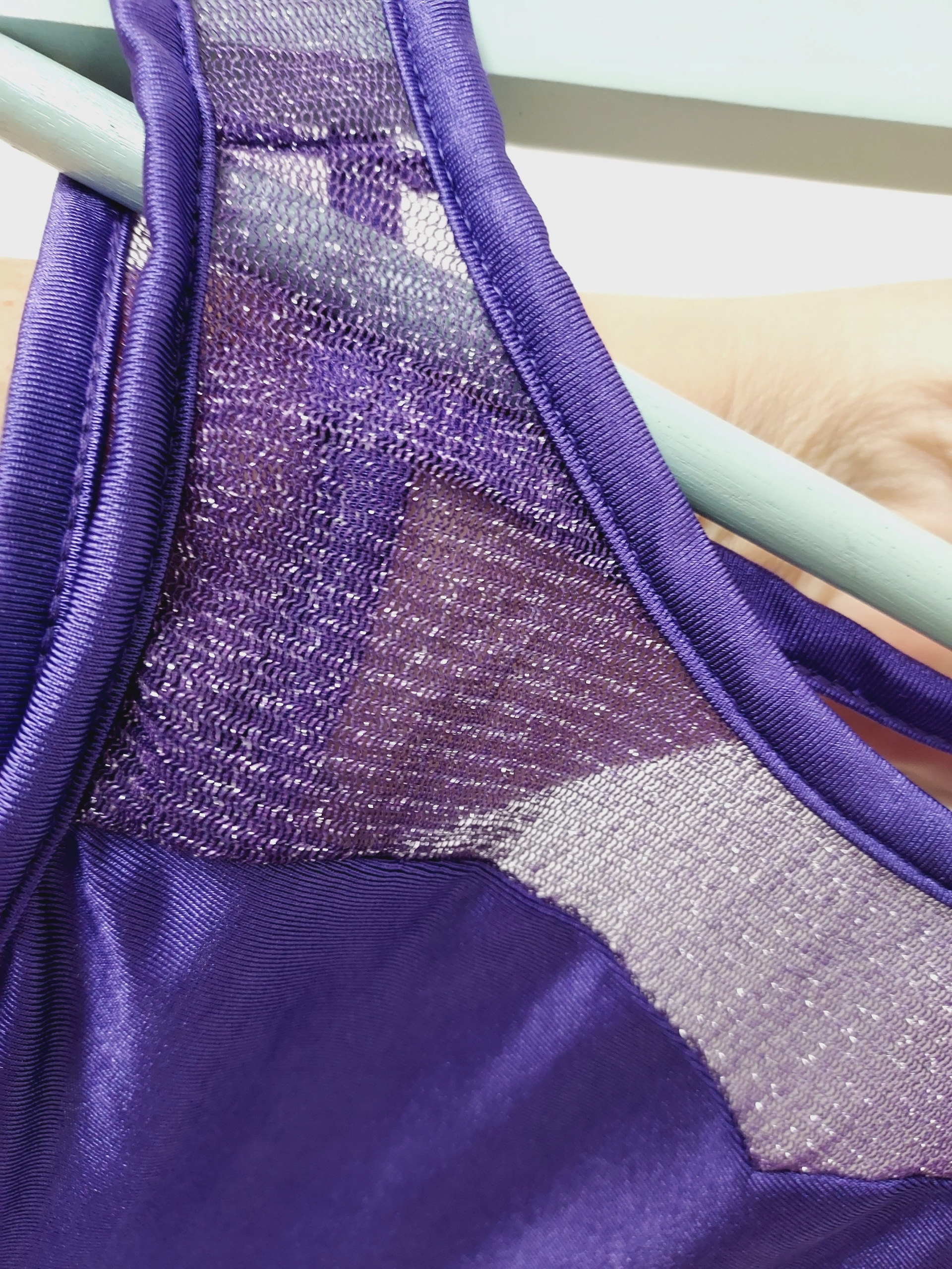Тіло з пришитною асиметричною спідницею, виготовленою з еластичної сітки, довшою задньою, виявленою назад.