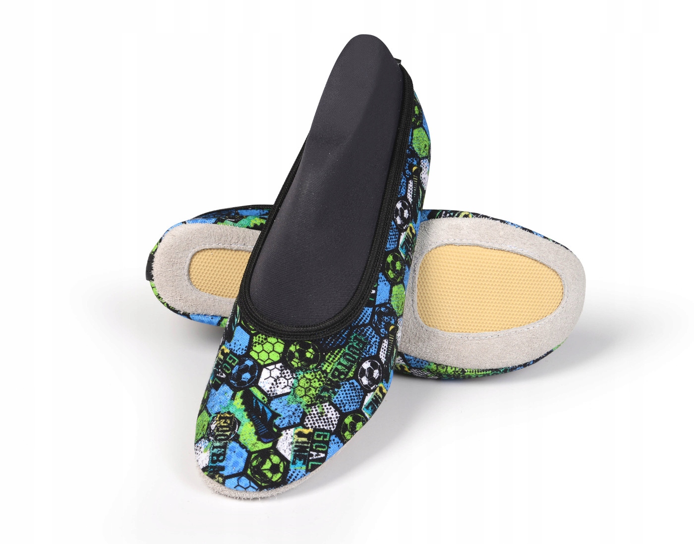 Пропоную балетки антиковзаючі 26 розмір (устілка 16,5 см) від відомого польського виробника. Синьо-зелений колір, мотив м'яча