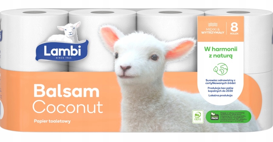 БАЛЬЗАМ ОТ ТУАЛЕТНОГО ПАПЕРУ LAMBI 8 РОЛИКІВ КОКОС 3-Ш