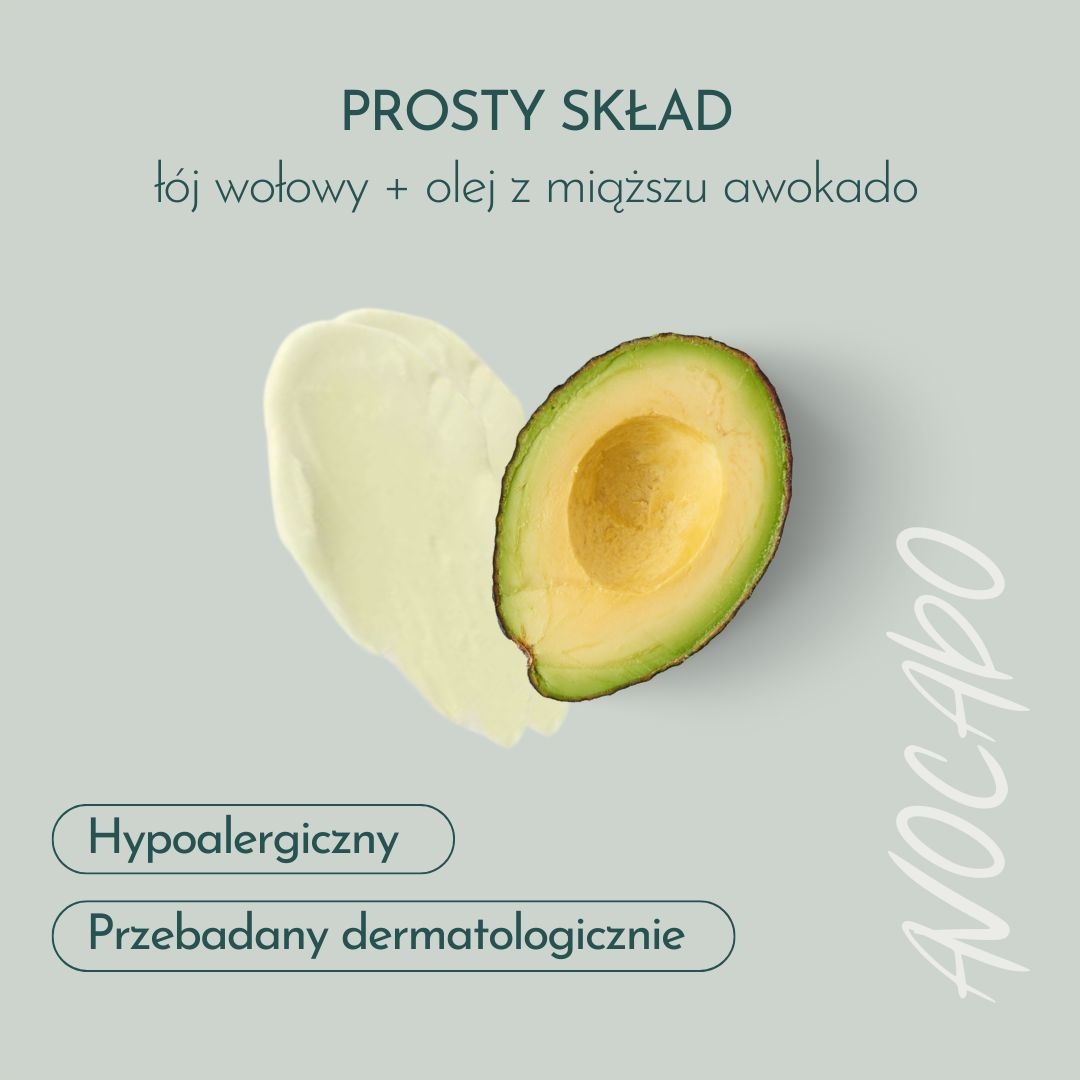 - Легко в застосуванні, ідеально підходить для першого досвіду з косметикою на основі сала яловичого, - 100% природного складу - помітний аромат яловичого жиру та олії з авокадо. Без зайвої хімії, синтетики та штучних ароматів.