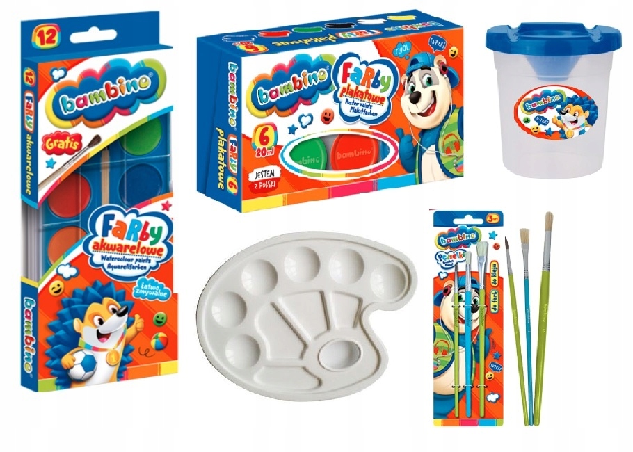 акварельні фарби з пензлем 12 кольорів бамбіно