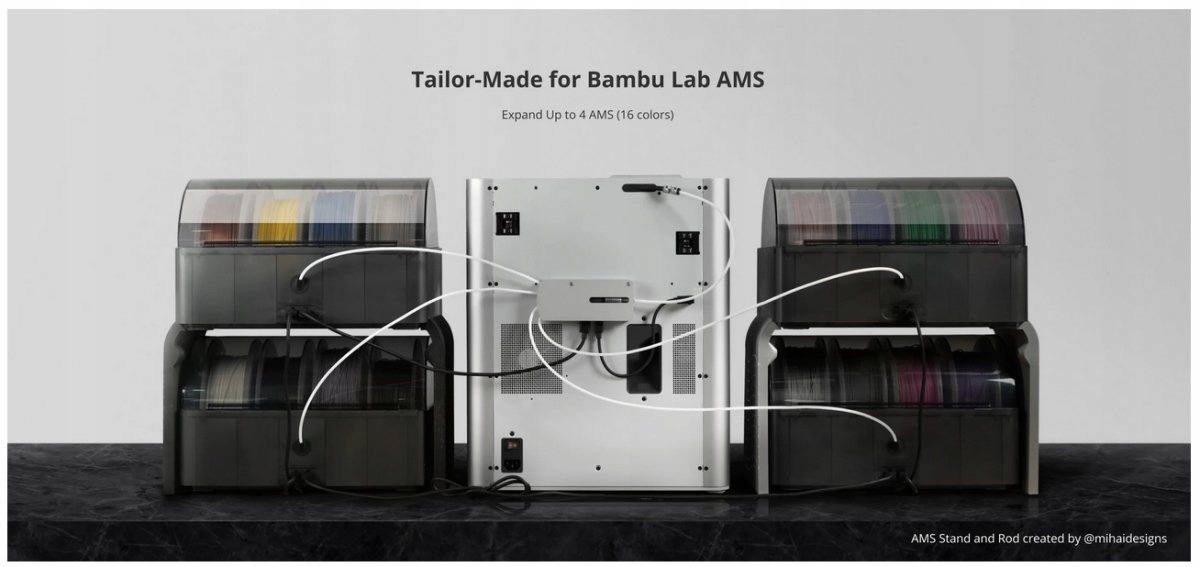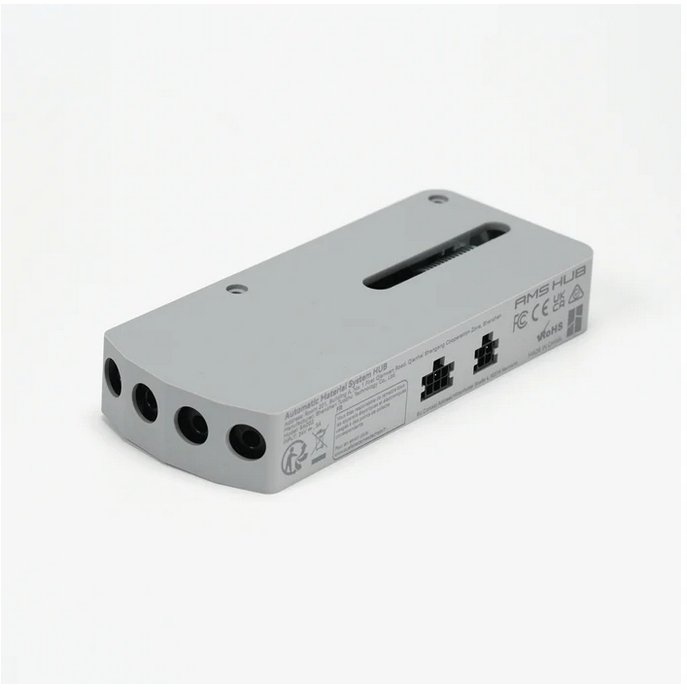 AMS Hub – це концентратор, який використовується для збільшення кількості систем AMS, підключених до принтерів серії Bambu X1/P1. За його допомогою можна підключити від 1 (4 канали) до 4 (16 каналів) автоматичних матеріальних станцій (Bambu Lab AMS).