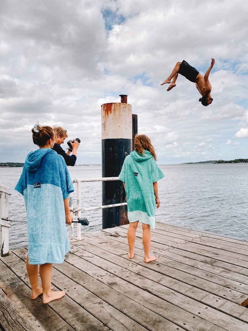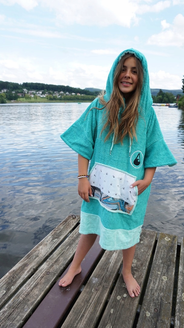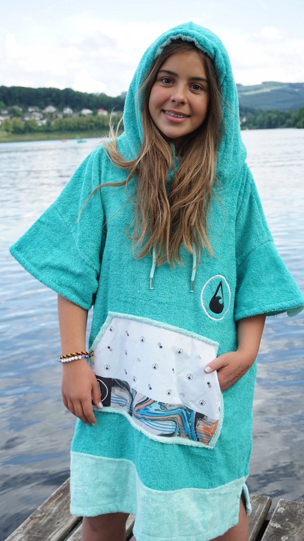 Ідеально підходить для серферів після плавання, басейну або навіть вдома. Ви можете використовувати їх як рушник, утеплювач або як свою переносну роздягальню. Його унікальність полягає в тому, що він виготовлений на 60 відсотків з бамбука, що робить його таким приємним на дотик і теплим. Ретельно підібрані тканини приємні до шкіри та добре вбирають воду. Важливо те, що наші бамбукові пончо сохнуть утричі швидше, ніж звичайні бавовняні пончо.