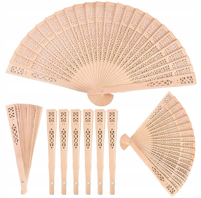 Неодмінний елемент літніх вечірок, особливо в азіатському стилі. Вони виготовлені з дерев’яних планок. Віяла також добре підходять як весільні прикраси чи подарунки для гостей.