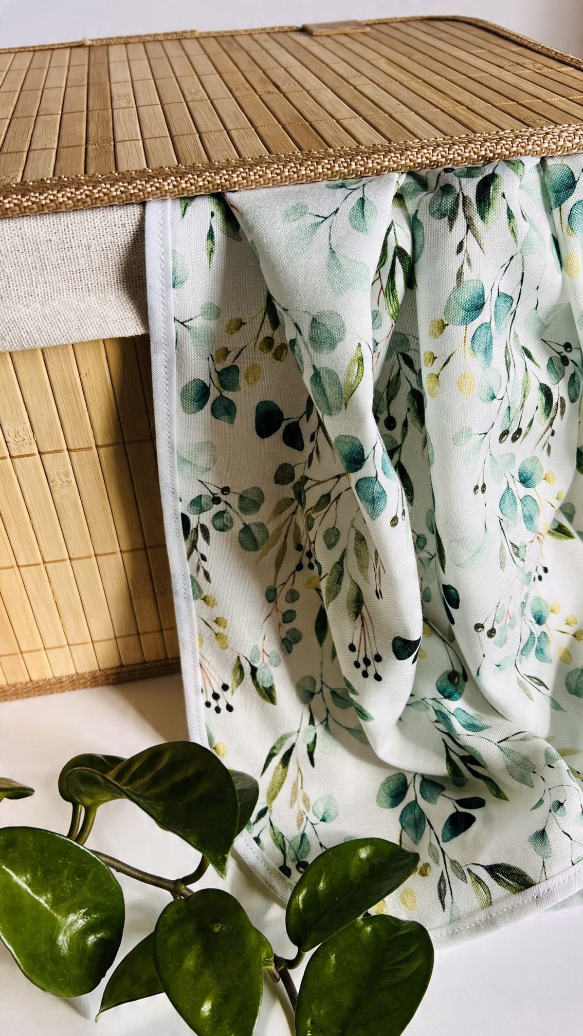 Рушник для волосся з візерунком «Евкаліпт» обов’язковий для кожного справжнього ентузіаста волосся! Він був повністю виготовлений з польської бамбукової віскози та оздоблений білою бавовняною окантовкою. Завдяки петлі на одній із довгих сторін рушника його можна зручно повісити на вішалку.