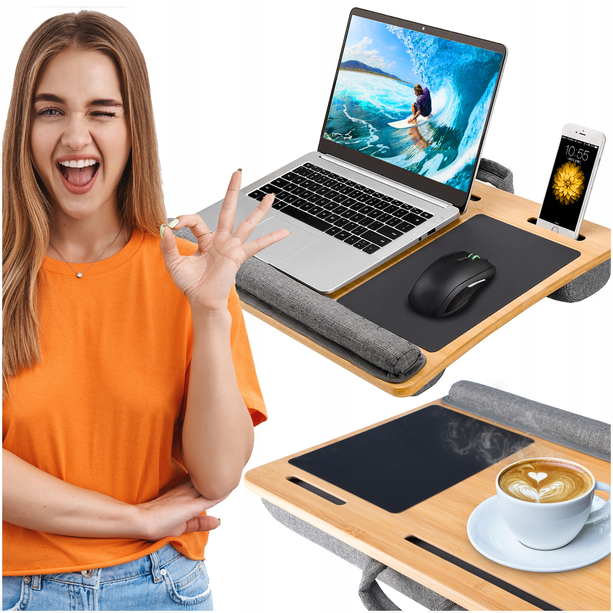 ⭐Багатофункціональна настільна підставка з бамбуковою підставкою для комфортної роботи з ноутбуком або відпочинку з улюбленою книгою.