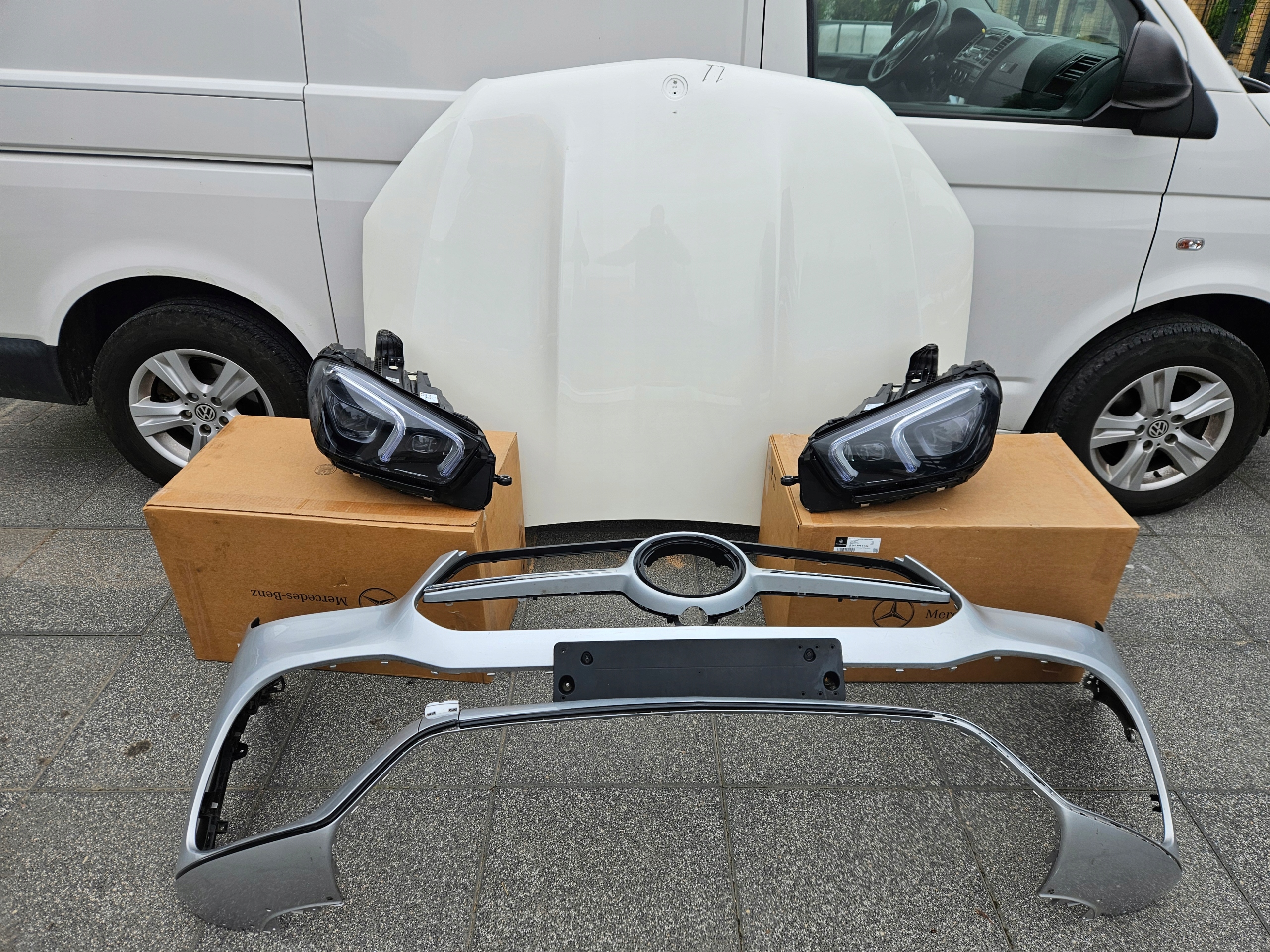 Бампер, маска, ліхтарі правий і лівий, амортизатор на Mercedes GLE W167 AMG, в дуже хорошому стані, маска має невеликі пошкодження, в іншому дуже гарна, ціна вказана за весь комплект.