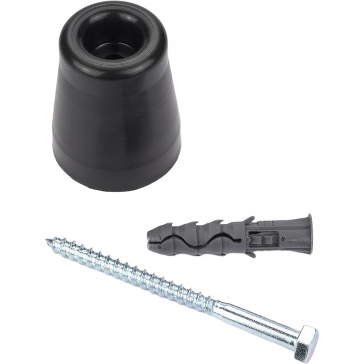 Обмежувач дверей, стопор. Виготовлений з м'якого матеріалу, він захищає двері та стіну від пошкоджень. Прикручується до підлоги або стіни. Монтажний набір включено.
