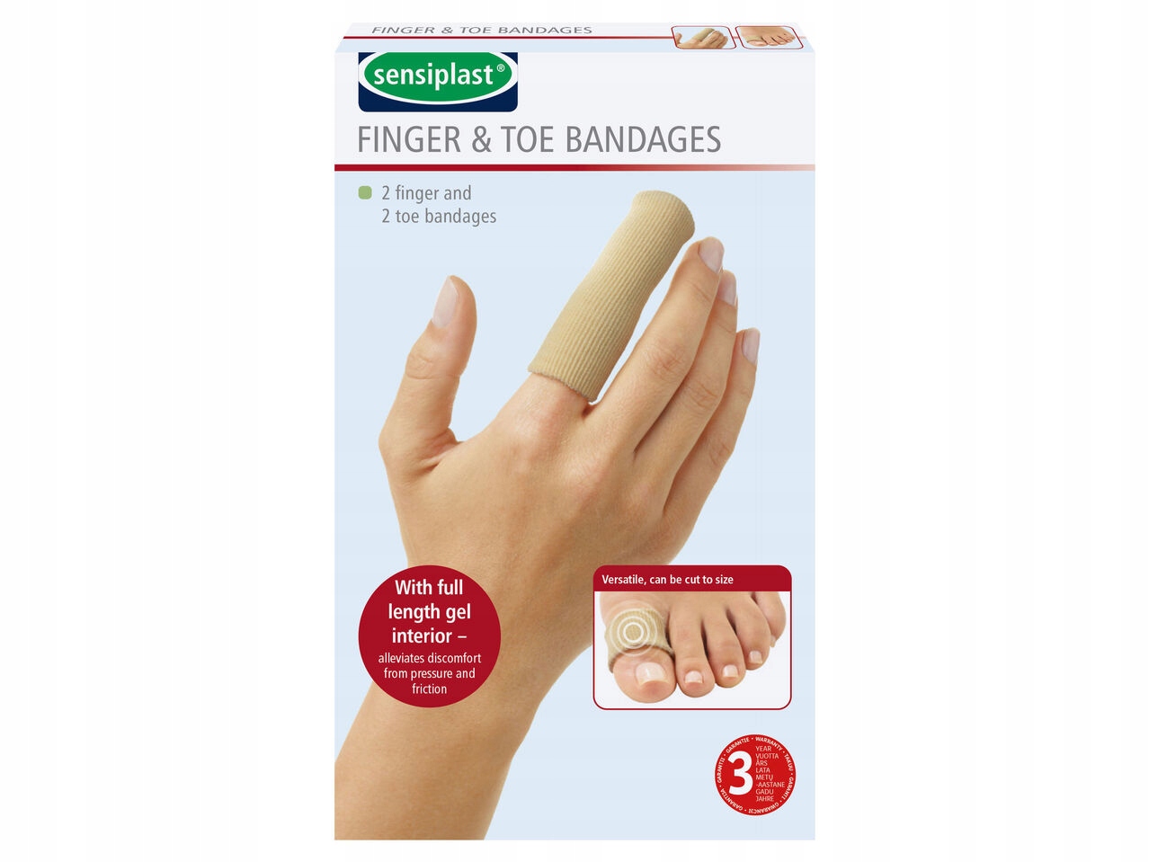 Sensiplast® Bandage Діапазон пальця є ефективним захистом для чутливих ділянок пальців рук і ніг. Гель -шматочки поглинають удари, мінімізують тертя та захищають від потертостей та травм. Завдяки гнучкому матеріалу їх можна вільно вирізати, щоб ідеально адаптуватися до ваших потреб.