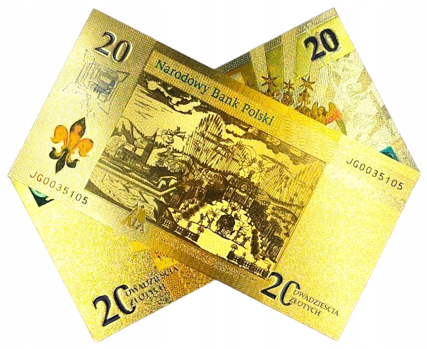 Репліка першої польської колекційної банкноти, виготовленої з ПВХ і покритої фольгою золотого кольору.