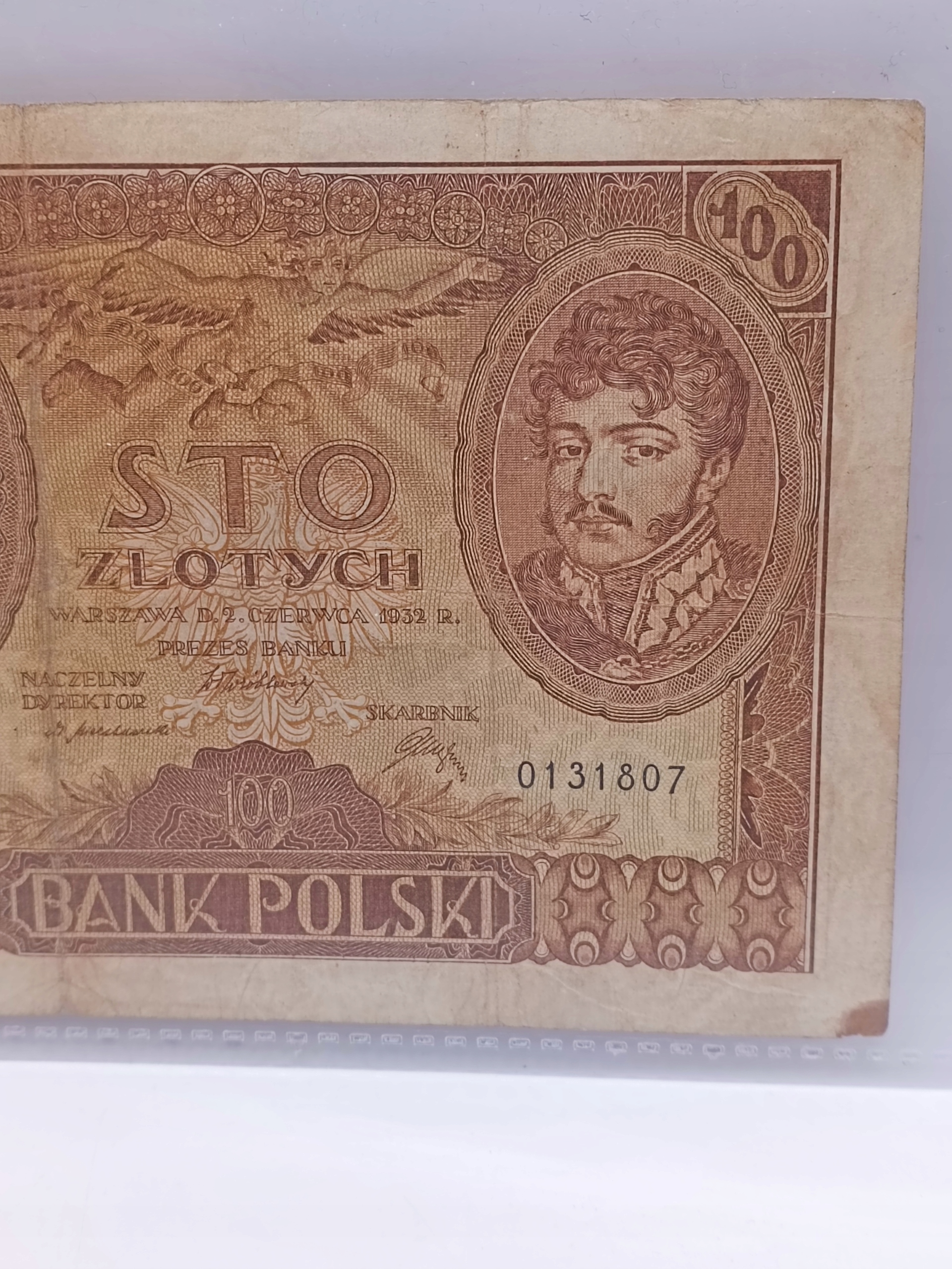 БАНКНОТА 100 ЗЛ., СТО ЗЛ., ВАРШАВА, 2 ЧЕРВНЯ 1932 РОКУ. СЕРІЯ: АА. 0131807