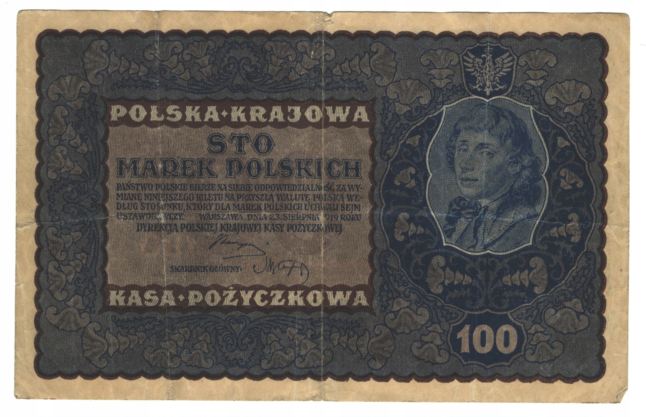 БАНКНОТА СТО ПОЛЬСЬКИХ МАРОК 1919 РОКУ