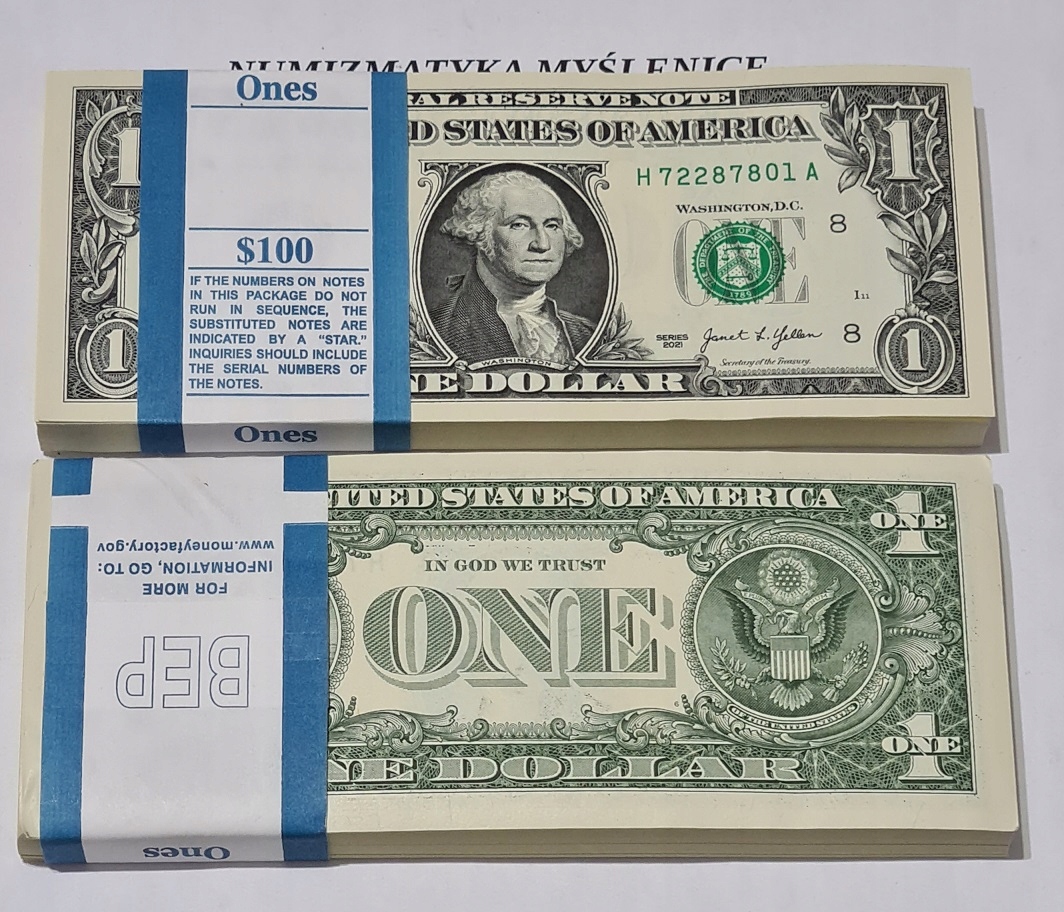 Банкноти один долар 2021 року, 10 шт. Серія H - Банк Сент-Луїса