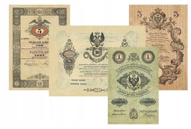 Набір із 4 примірників грошових знаків Царства Польського 1824 (1828) - 1866 рр. - срібні рублі