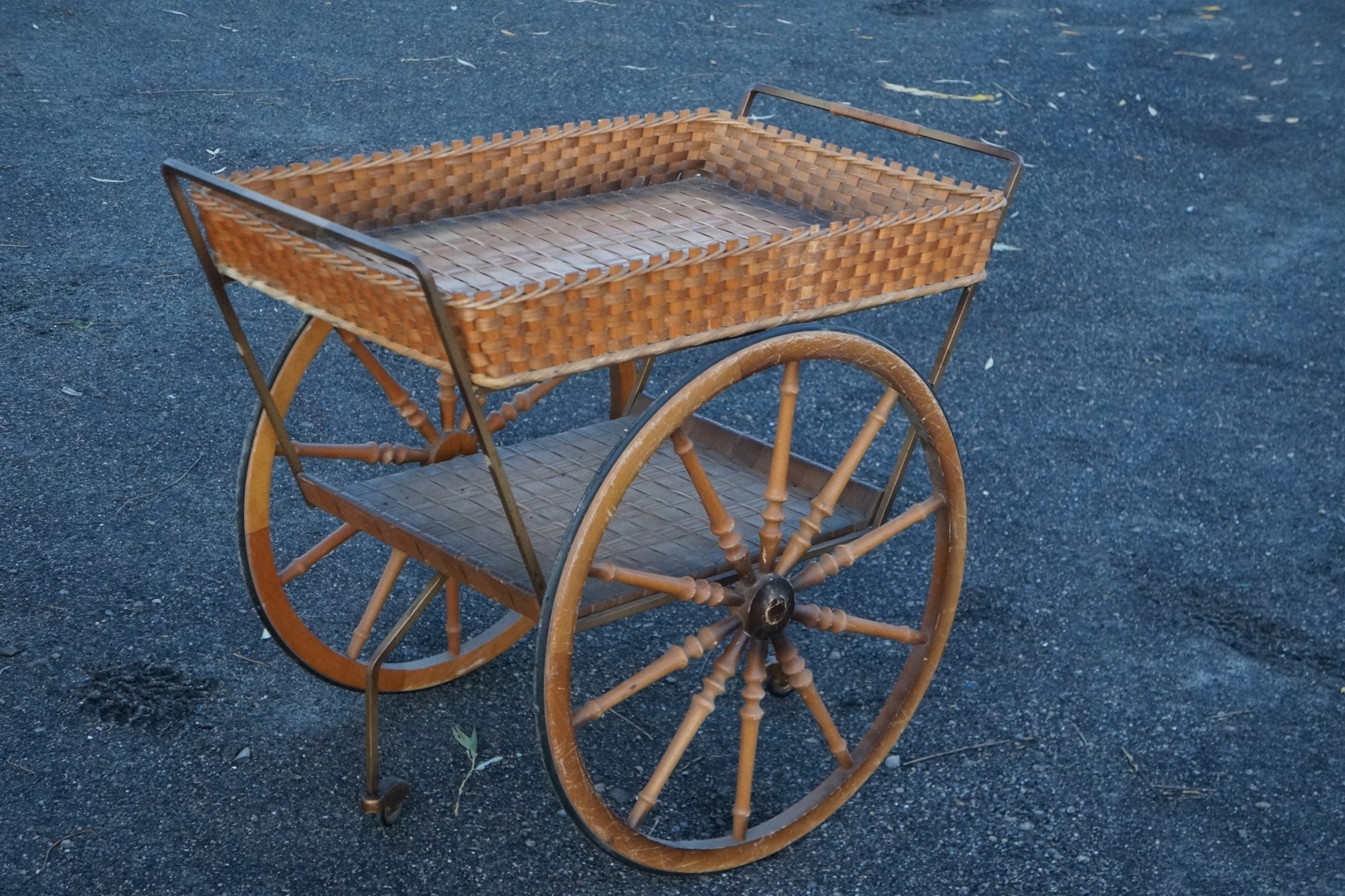 Красивий дворівневий стіл - бар на колесах. ОДНЕ КОЛЕСО ТРОШКИ ТРІСНУЛО, ВІДРЕМОНТОВАНО ЯК ВИДАЄТЕ НА ФОТО, ТЕПЕР СЛУЖИТЬ ДОВГО