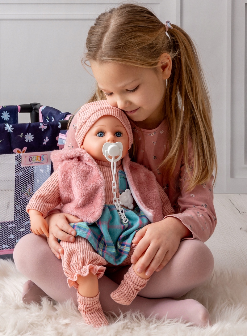 Включена прикріплена красива лялька doris . Ви можете обійняти його, доглядати за ним і транспортувати в ляльковому візку.
