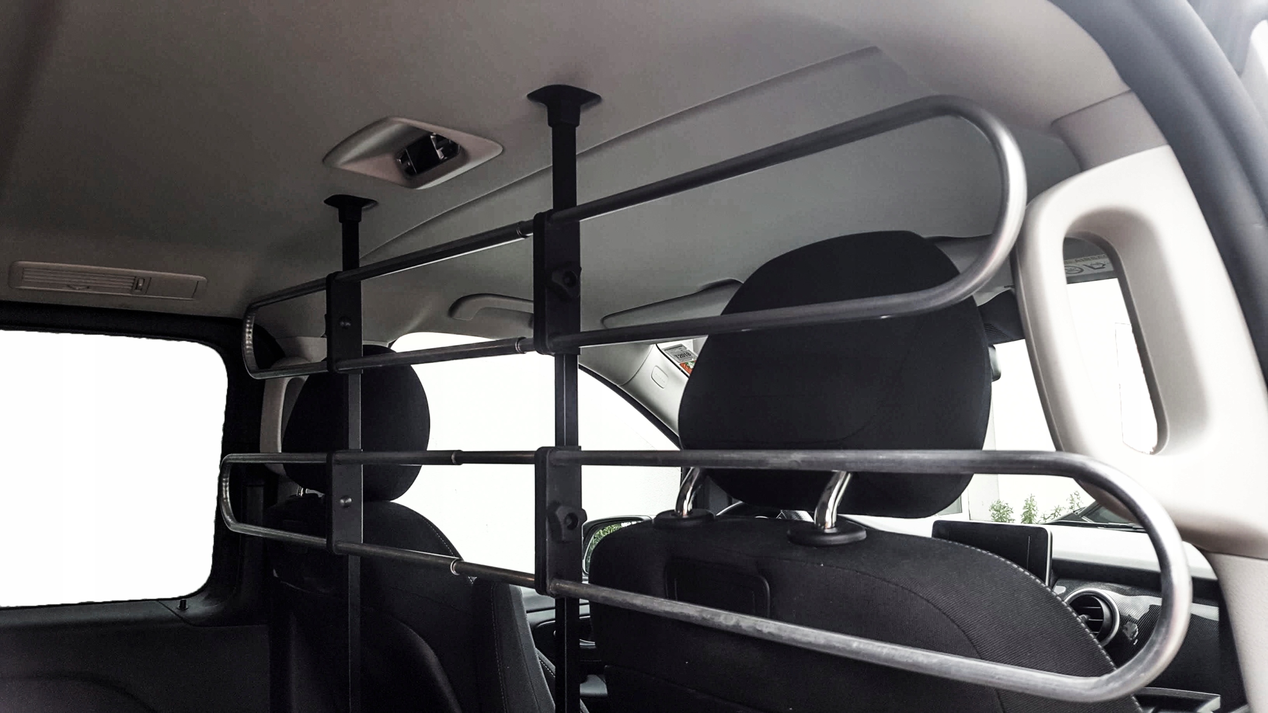 MB Перегородка багажника, що відокремлює багаж, собаку від салону. Регулювання перегородки дозволяє встановлювати її в багажники з мінімальними розмірами 77 x 96 см (висота x ширина) і максимальними розмірами 130 x 146 см.