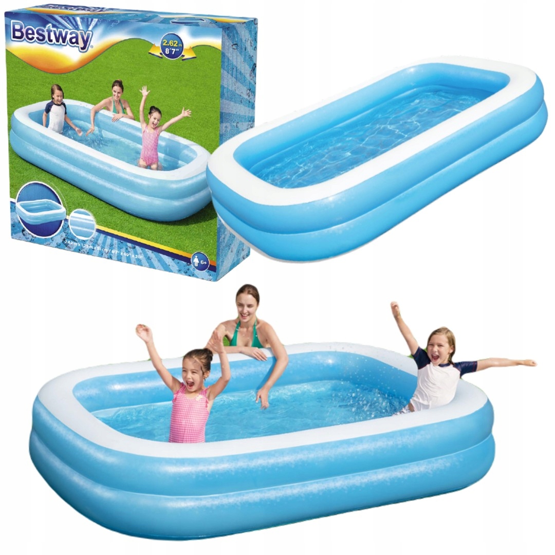 Басейн Bestway 54006 – це надувний садовий басейн прямокутної форми, розміри 262 см x 175 см x 51 см, об’єм 778 л, що означає, що він підходить для сімей. або група друзів. Басейн виготовлений з міцного матеріалу, стійкого до пошкоджень і УФ-променів. Монтаж басейну простий і не вимагає використання інструментів. Басейн необхідно поставити на рівну та стійку поверхню та наповнити водою відповідно до інструкції. В кінці сезону басейн можна легко розібрати та зберігати в сухому та затіненому місці.