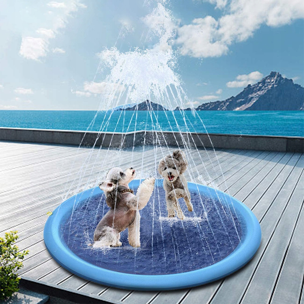 - 59-дюймовий килимок для собак і дітей достатньо місткий для 1-2 дітей, собак і немовлят і домашні тварини можуть одночасно грати на цьому зовнішньому спринклерному килимку,