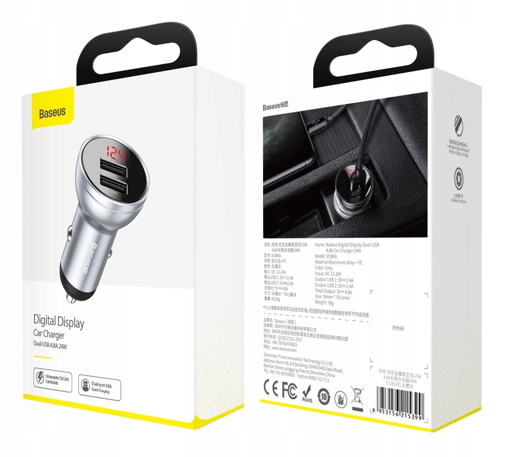 BASEUS АВТОМОБІЛЬНИЙ ЗАРЯДНИЙ ПРИСТРІЙ БЛОК ЖИВЛЕННЯ ДЛЯ ТЕЛЕФОНУ 2X USB 24W LED 4.8A