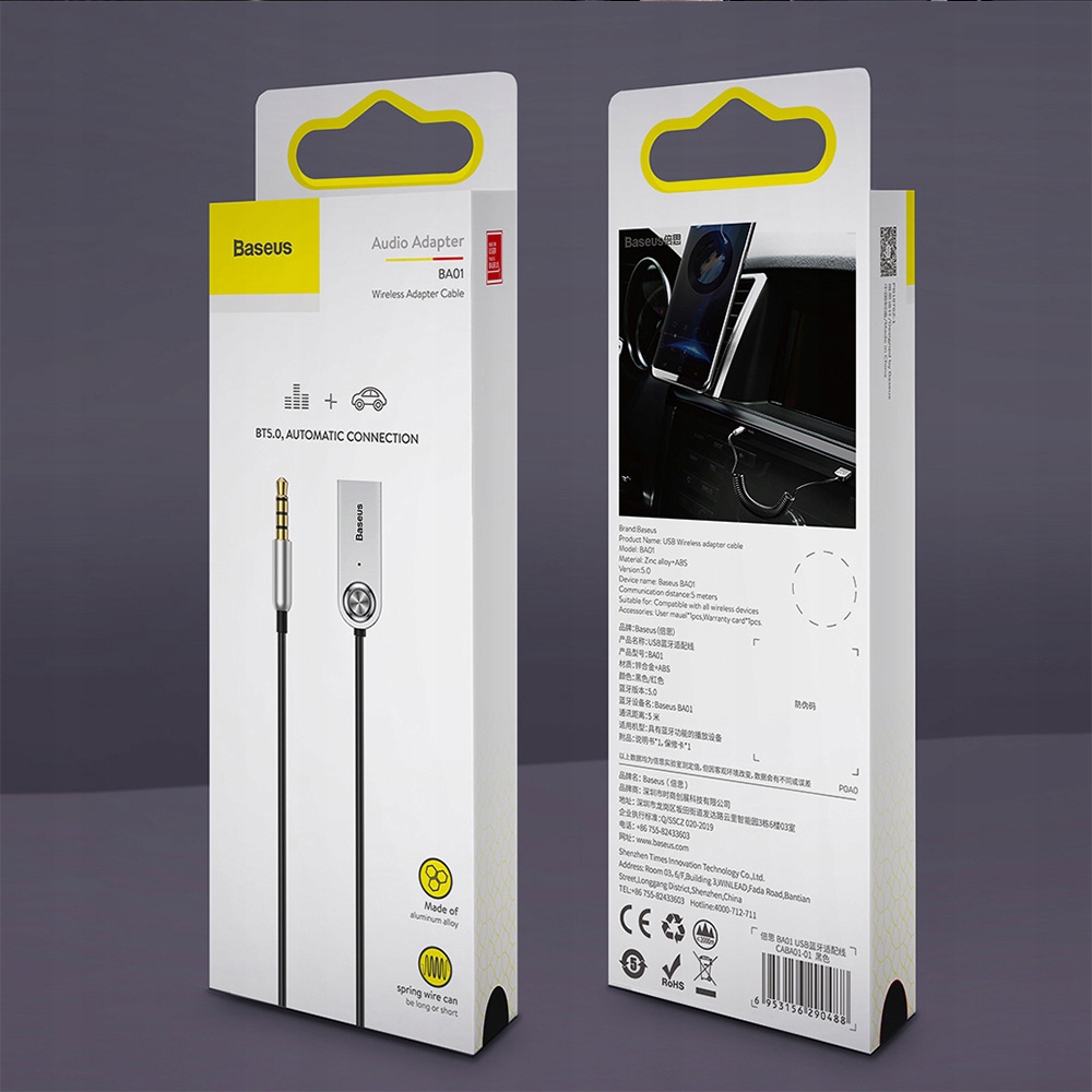 BASEUS Sound Transmitter – це елегантний і компактний Bluetooth-адаптер, оснащений USB-роз’ємом і міні-джеком 3,5 мм. Пристрій дозволяє приймати аудіосигнал з пристроїв, оснащених функцією BT, таких як смартфон або планшет, на пристрої без такої функції, наприклад, автомагнітола, колонки. Адаптер має останню версію BT 5.0 із радіусом дії приблизно 5 м. Завдяки вбудованому мікрофону пристрій підтримує функцію Hands-free. Для належної роботи потрібне джерело живлення, підключене до порту USB.