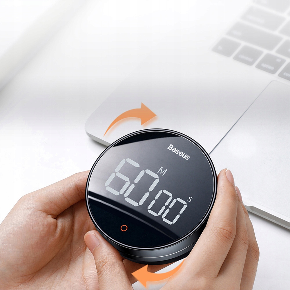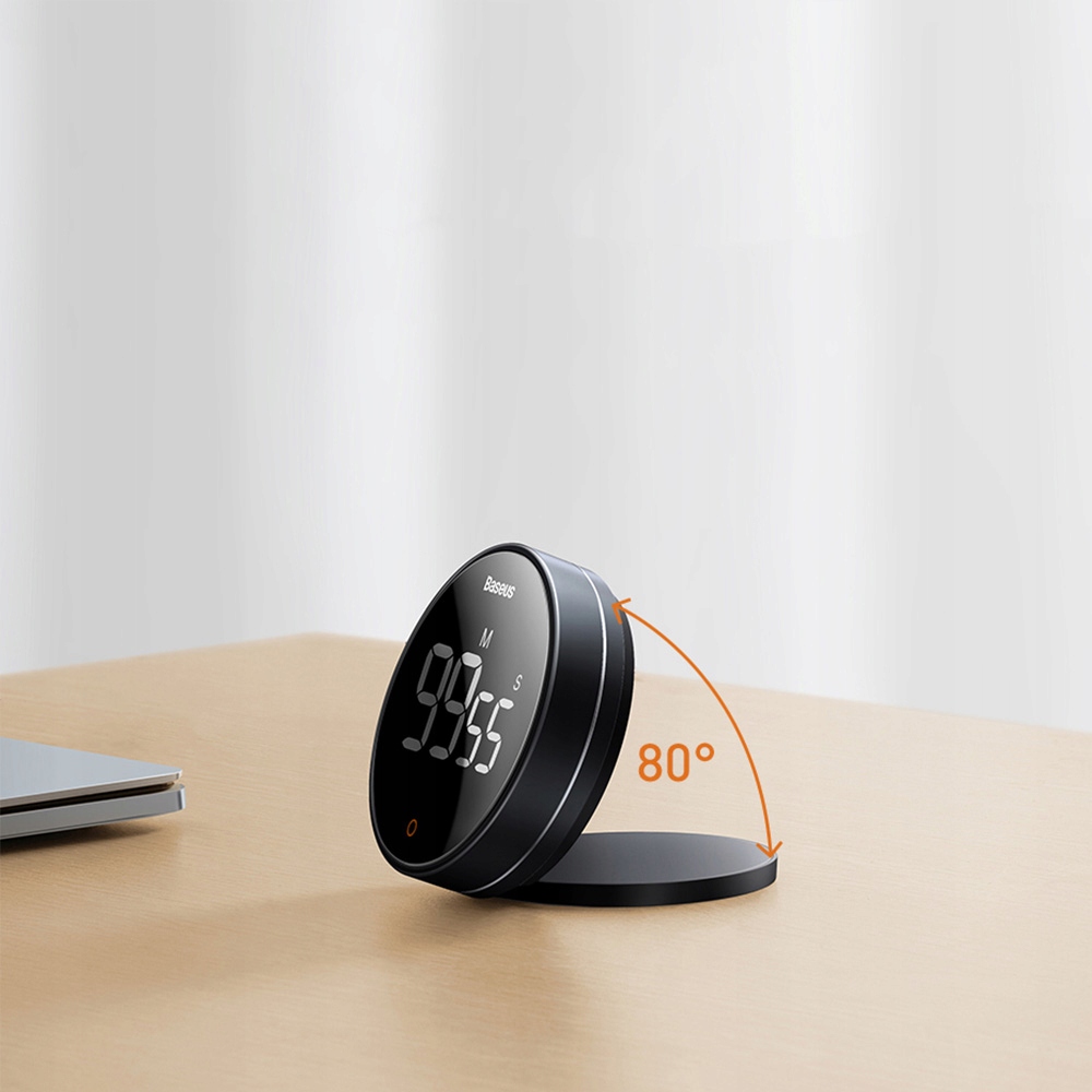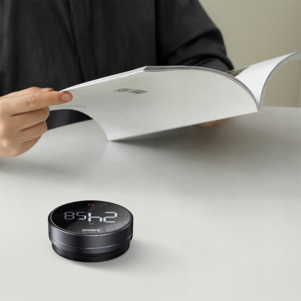 BASEUS Heyo Timer Pro — це продукт, розроблений для людей, які хочуть ефективніше керувати своїм часом. Завдяки його використанню ви підвищите ефективність і краще організуєте свій день, роботу чи навчання. Таймер має стильний і мінімалістичний вигляд, завдяки чому він ідеально впишеться в будь-який інтер'єр. Вбудоване світлодіодне підсвічування дозволяє використовувати його в будь-який час дня і ночі. Корпус таймера оснащений магнітом, тому ви можете розташувати його на дверцятах холодильника, мікрохвильової печі або на металевій дошці, тому ви можете розмістити його де завгодно. Зворотний відлік відбувається як у спадному, так і в зростаючому режимах, його закінчення сигналізується в одному з 3 режимів гучності. Діапазон часу від 0 до 99 хвилин 55 секунд. Таймер живиться від трьох батарейок типу ААА (не входять у комплект).