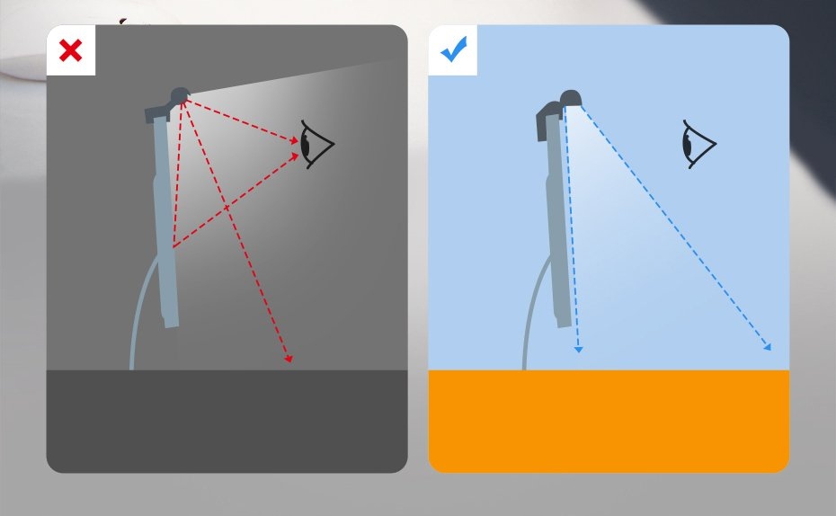 База -лампа дозволяє довше працювати зі значно меншою втомою, ніж при роботі без неї. Завдяки цьому ви можете працювати довше та ефективніше. Ретельно висвітлює простір перед монітором.