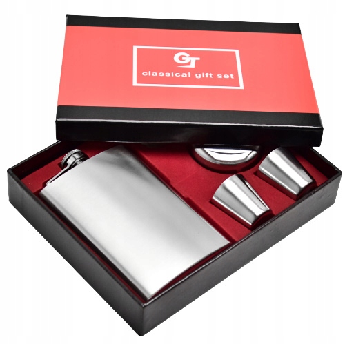 Елегантний подарунковий набір: фляга, воронка, дві склянки та складаний стакан на кільці для ключів