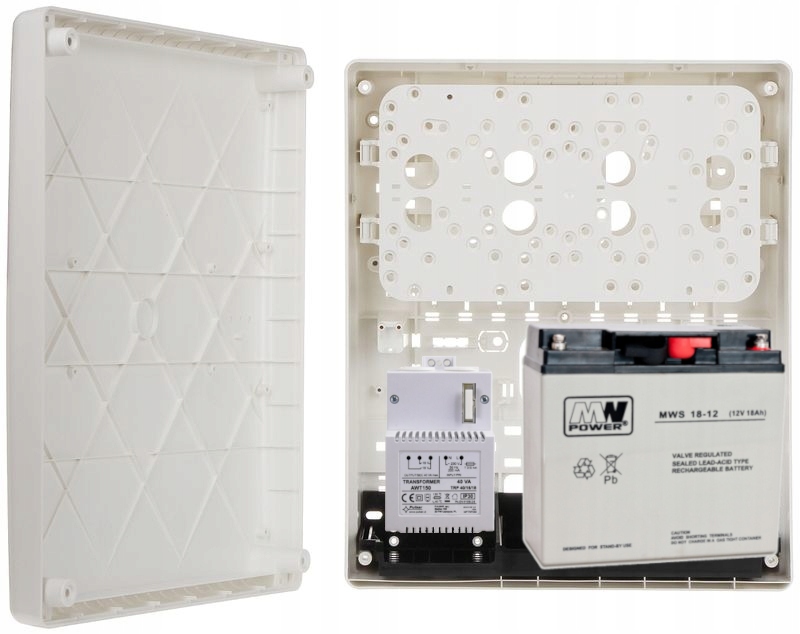 Він оснащений подвійним протидиверсійним захистом: перед відкриттям кришку та від'єднання від стіни. Тут також є місце для встановлення мережевого трансформатора на 40 ВА (у комплекті) або 60 ВА та резервного акумулятора на 12 В ємністю 7 А·год або 17 А·год (MWS 18 А·год у комплекті). Він не блокує та не послаблює радіосигнал, тому всередині можна розміщувати бездротові пристрої з антенами.