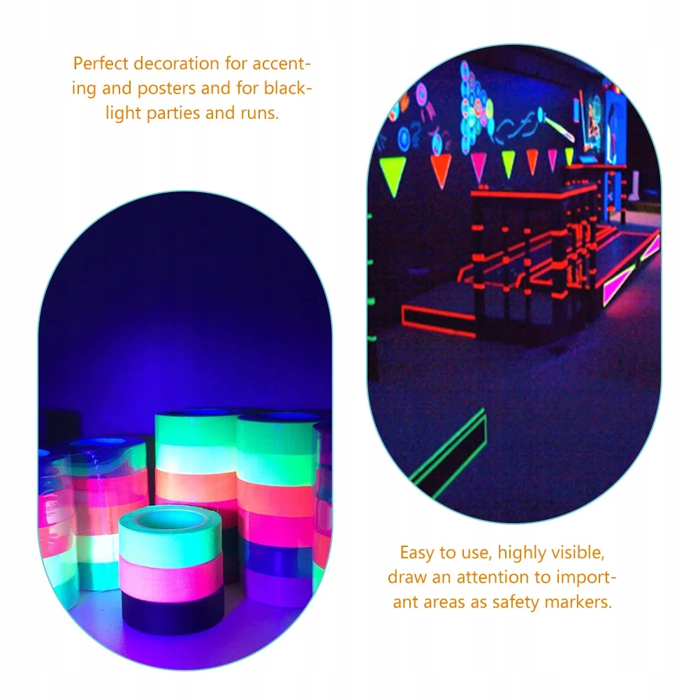 Ці флуоресцентні тканинні стрічки настільки креативні, що ви можете прикрасити все, що задумаєтеся! Добре видно, щоб привернути увагу. Підходить для різноманітних вечірок, таких як різдвяна вечірка, вечірка на Хеллоуїн, вечірка на день народження, різдвяна вечірка, вечірка з ультрафіолетом тощо.