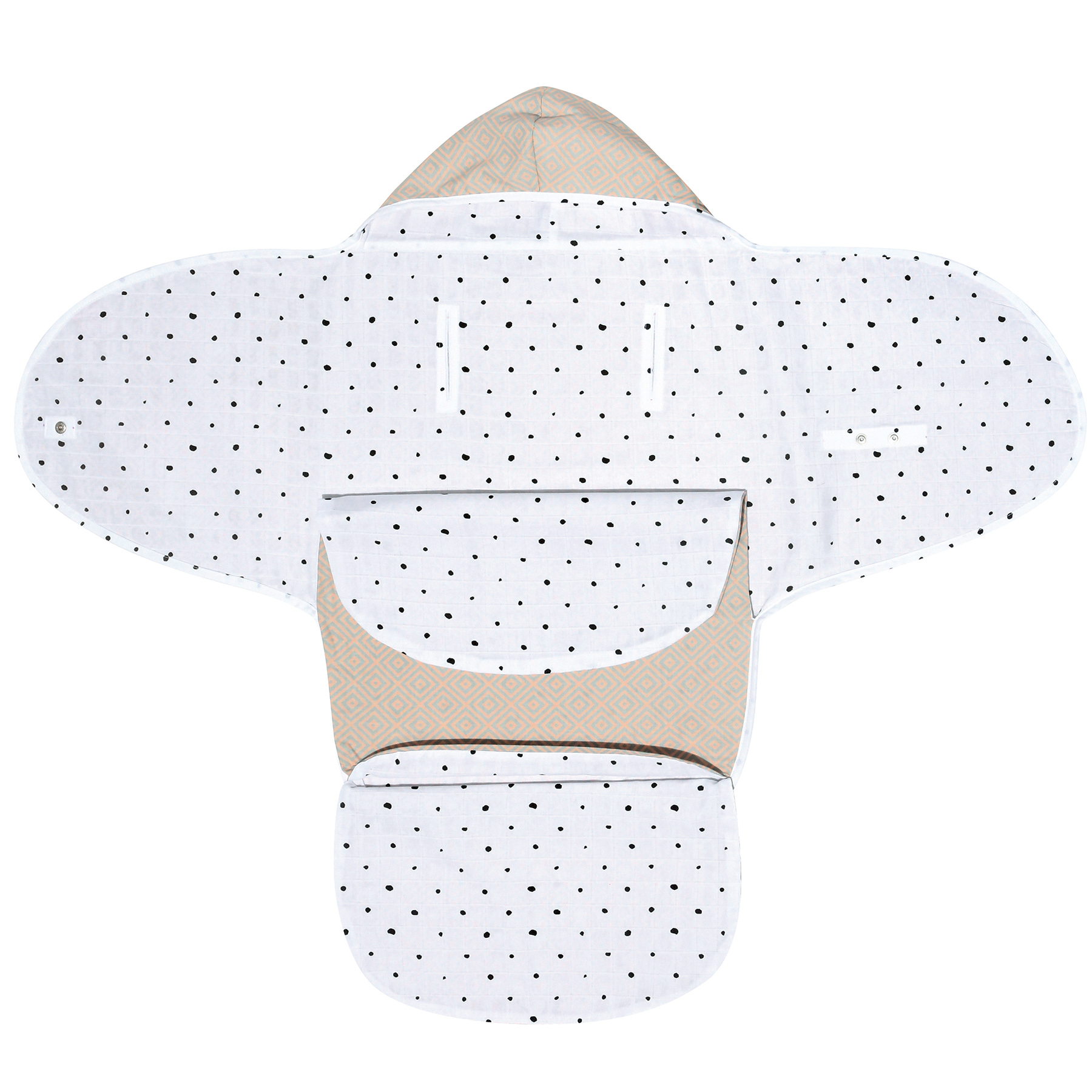 бавовняна кришка автомобіля, як єдиний на ринку, оснащений ніжною ковдрою, пришитим всередині лебідка. Ця конструкція особливо корисна під час довших подорожей. Це дозволяє обгортку поширюватися, коли вона вказана, надаючи можливість обернути дитину без ризику перегріву чи охолодження.