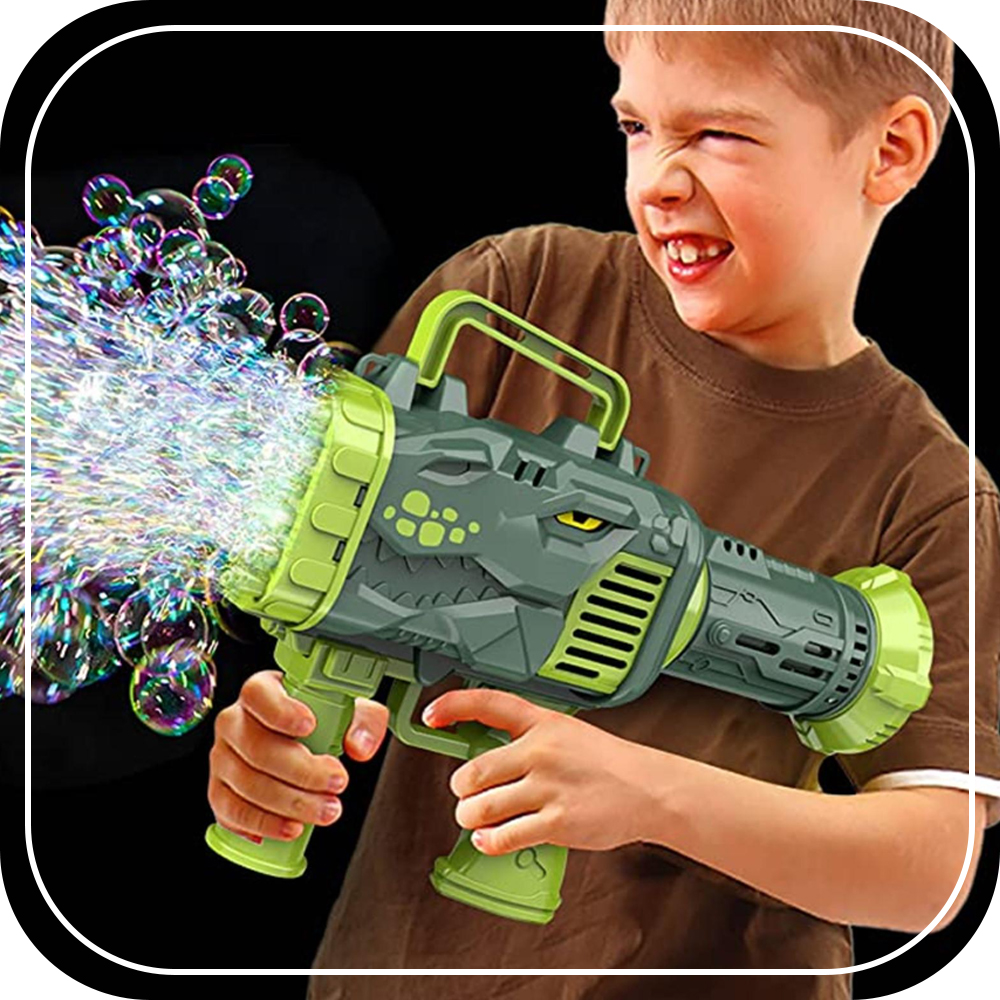 Пістолет для мильних бульбашок — чудова іграшка, яка сподобається як маленьким, так і великим дітям. Пістолет має аж 32 отвори, з яких вилазять мильні бульбашки.