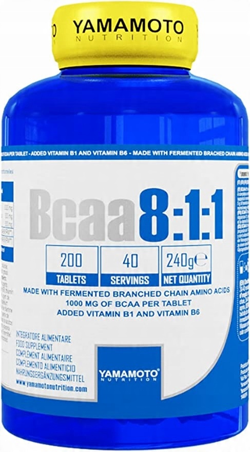 - BCAA 8:1:1 200 таблеток. Дієтична добавка, що містить ферментовані амінокислоти з розгалуженим ланцюгом (BCAA) у співвідношенні 8:1:1 з вітамінами B1 і B6.
