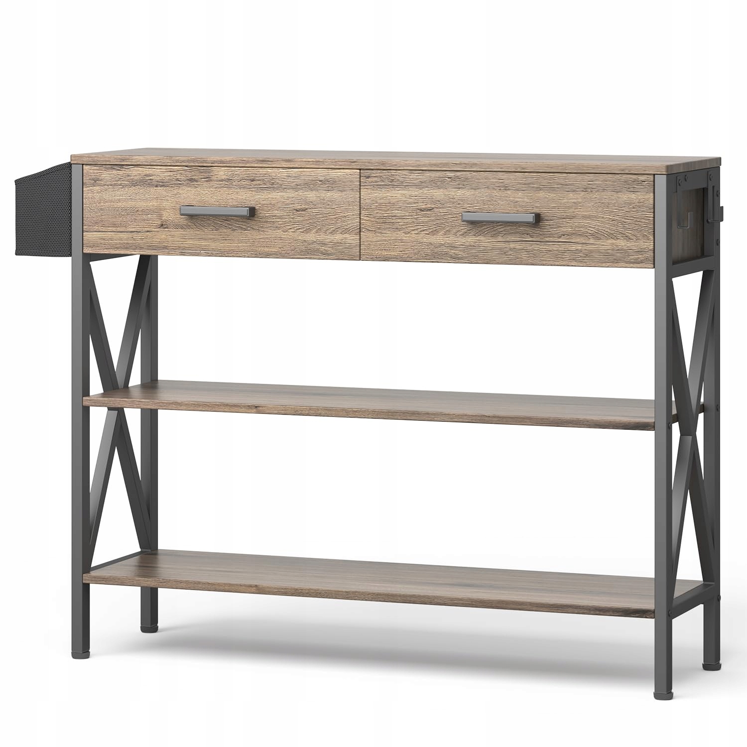 Сірий консольний стіл Bealife, дерев'яний бічний столик, стіл у передпокої з 2 ящиками та 2-ярусним відділенням.